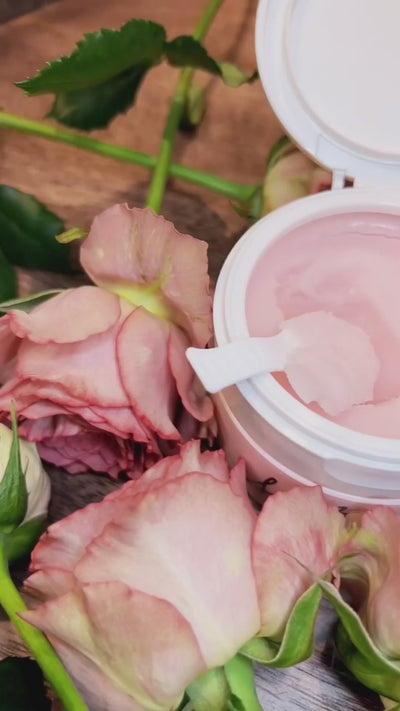 ローズオイル、リンゴ幹細胞エキス、ビタミンC誘導体、3種のヒアルロン酸、グリチルリチン酸2K